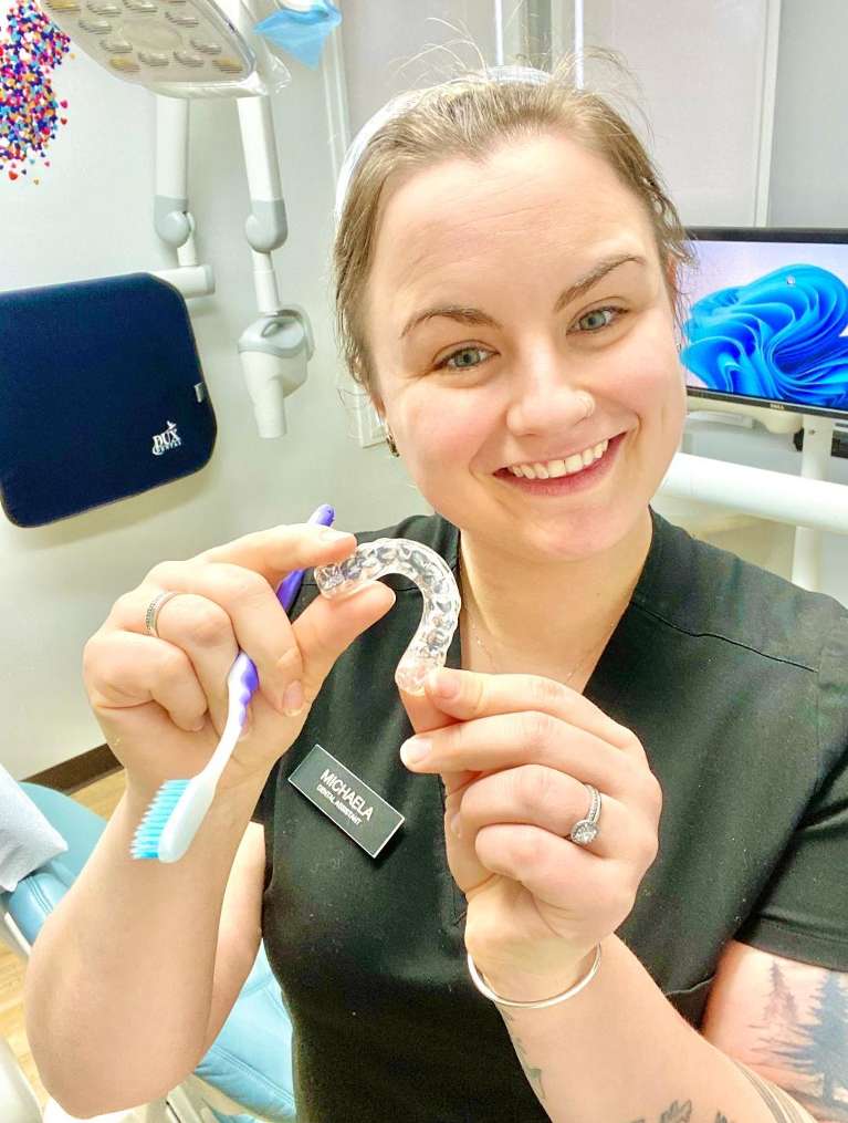 Michaela is a talented, bubbly assistant known as Dr. Kimberly's Right-Hand-Woman! She is happy to work with out patients who may be nervous about their trip to the dentist and loves having fun with the kids! Michaela trained staff on equipment and techniques right up to ...